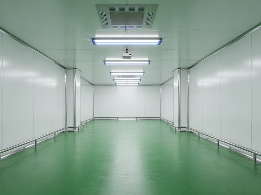 生物制藥生產(chǎn)車(chē)間內(nèi)部采用地面綠色、墻壁白色的統(tǒng)一簡(jiǎn)約風(fēng)格,精準(zhǔn)適配GMP潔凈生產(chǎn)要求。地面選用綠色抗菌環(huán)氧自流平材質(zhì),經(jīng)多道精密工序處理,兼具強(qiáng)耐磨、抗酸堿腐蝕特性,可耐受高頻次消殺與發(fā)酵液殘留清理,表面平整無(wú)死角。墻面采用白色食品級(jí)潔凈涂層,無(wú)縫拼接搭配圓弧陰陽(yáng)角設(shè)計(jì),杜絕微生物滋生,營(yíng)造潔凈無(wú)菌的生產(chǎn)環(huán)境。