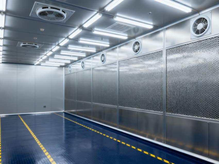 車間的干凈程度達到萬級標準(相當于國際標準ISO8級),每立方米空氣里,直徑0.5微米以上的灰塵顆粒不會超過352000個。我們用初效、中效、高效三層過濾網過濾空氣,再搭配頂部送風、底部回風的設計,每小時能把車間空氣換新20到25次。墻面用的是不容易吸附灰塵、能抗靜電的彩鋼板,地面鋪著耐磨的環氧樹脂材料,所有拼接的地方都做了密封。車間里的溫度一直保持在21℃到25℃之間,濕度控制在40%到50%,還專門安裝了防靜電設備,這樣就能防止灰塵和靜電影響新能源產品的質量,讓生產出來的東西更可靠。