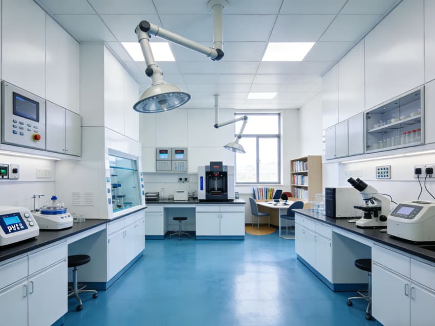 精密檢測實(shí)驗(yàn)室:劃分物理檢測區(qū)與化學(xué)分析區(qū),采用防震地面與生物安全柜,為力學(xué)性能測試、微生物限度檢測等提供穩(wěn)定環(huán)境;墻面嵌入緊急洗眼器與安全噴淋裝置,強(qiáng)化實(shí)驗(yàn)安全防護(hù)。